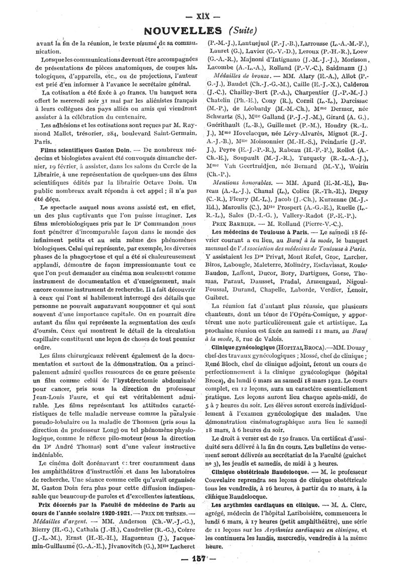 1922, n° 44, partie paramédicale. -