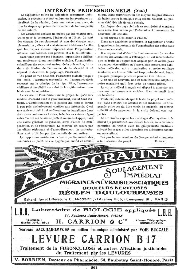 1922, n° 44, partie paramédicale. -