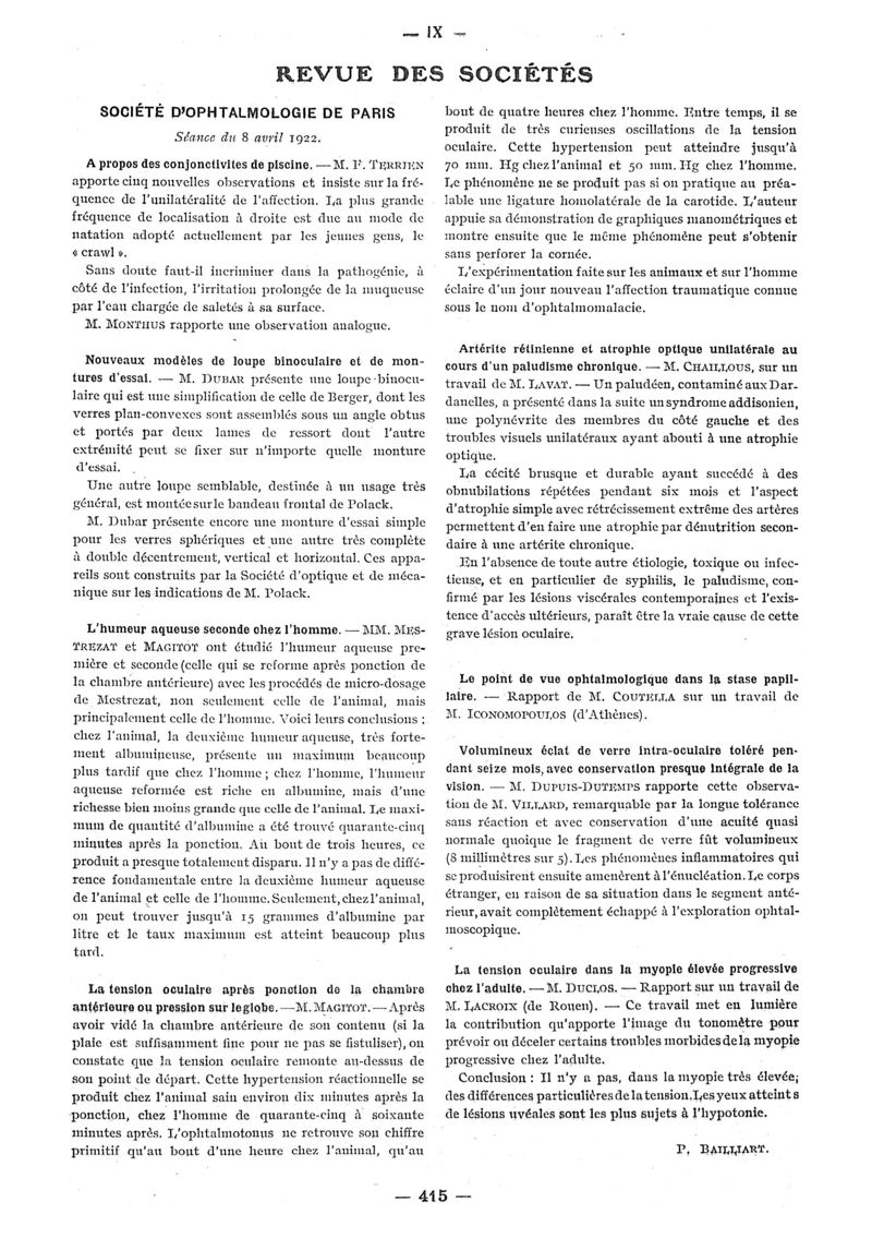 1922, n° 44, partie paramédicale. -