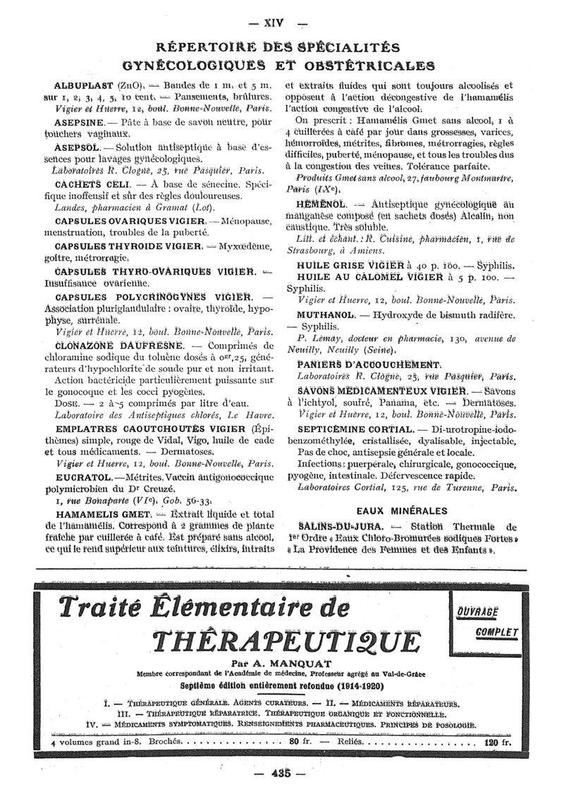 1922, n° 44, partie paramédicale. -