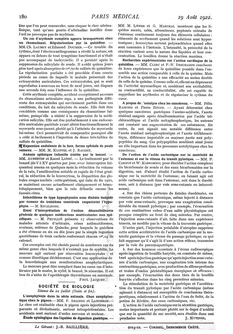 1922, n° 45, partie médicale. -