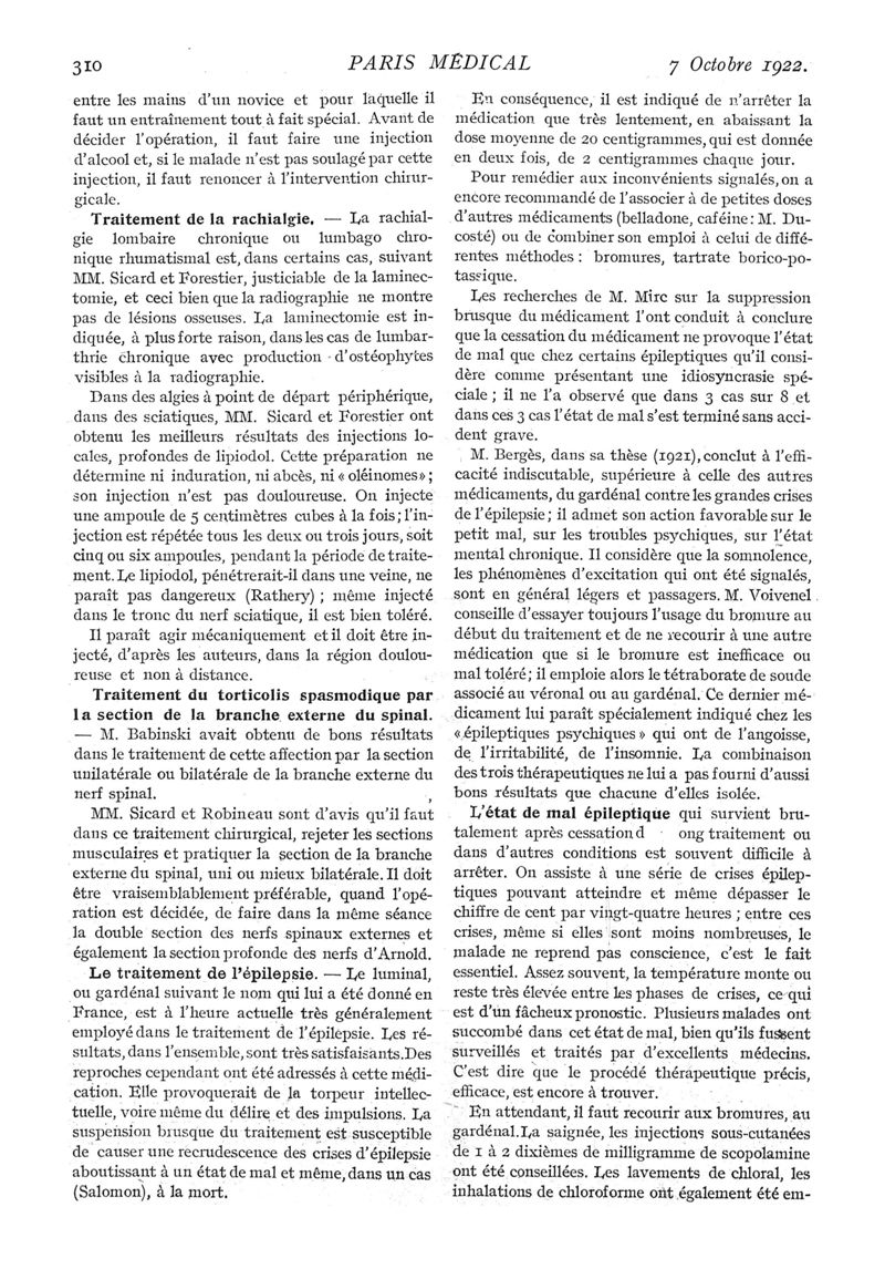 1922, n° 45, partie médicale. -