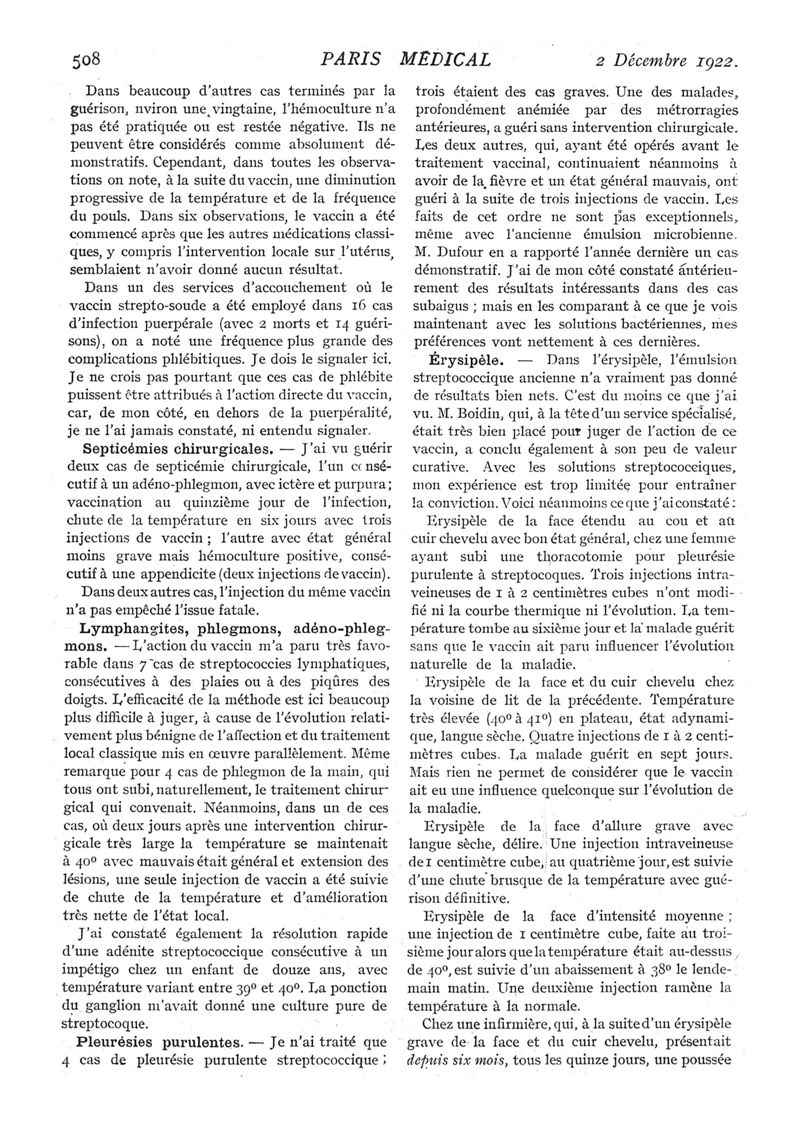 1922, n° 45, partie médicale. -