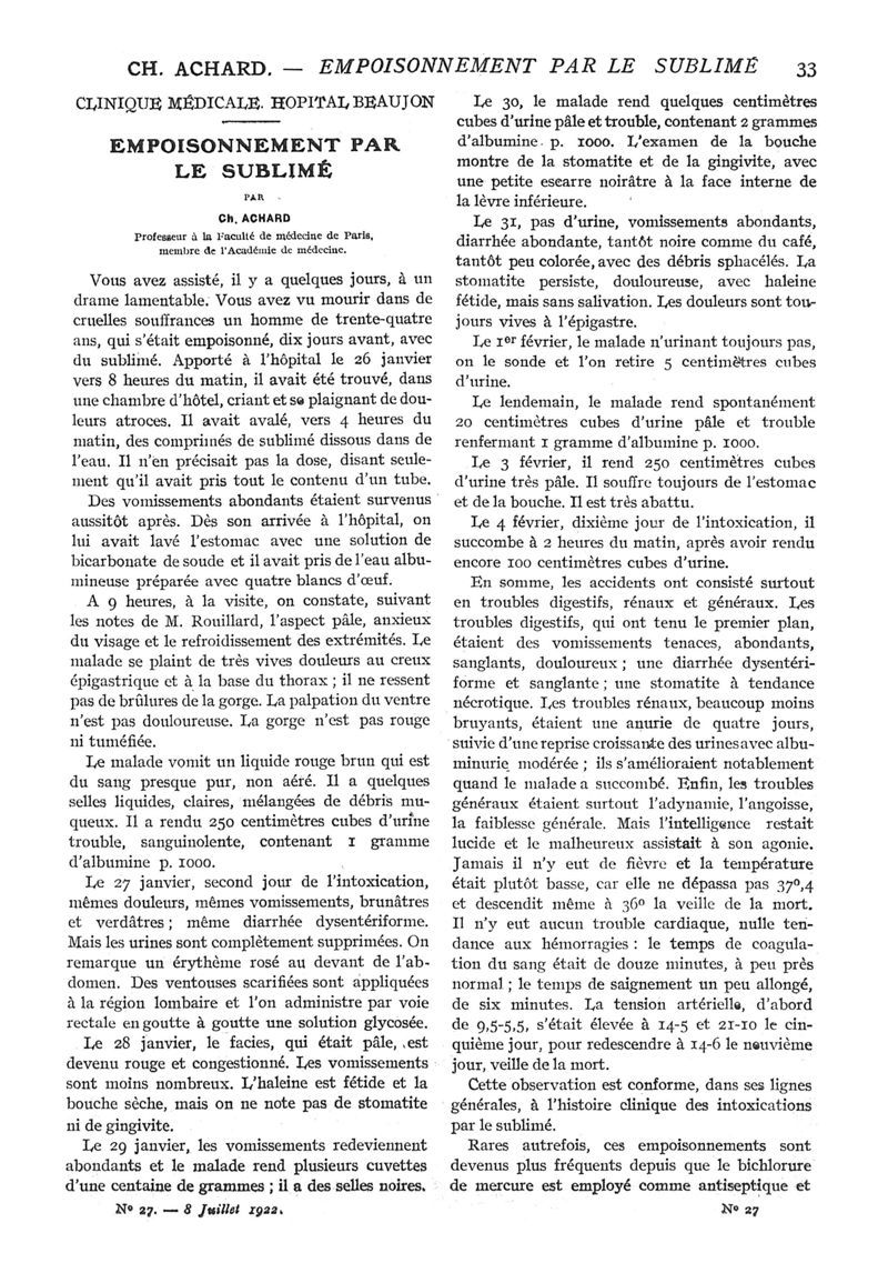1922, n° 45, partie médicale. -