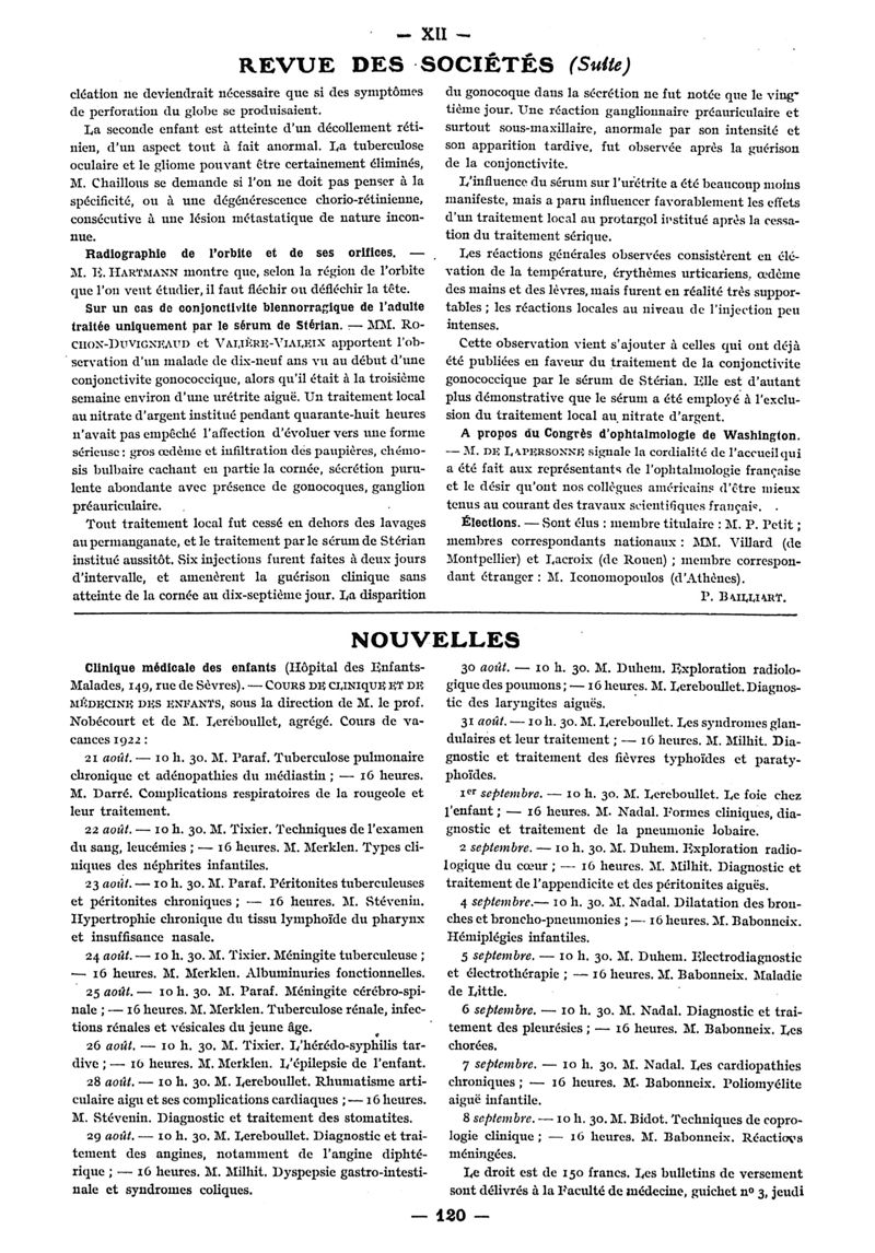 1922, n° 46, partie paramédicale. -