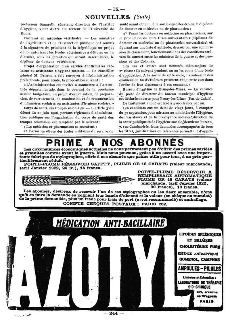 1922, n° 46, partie paramédicale. -