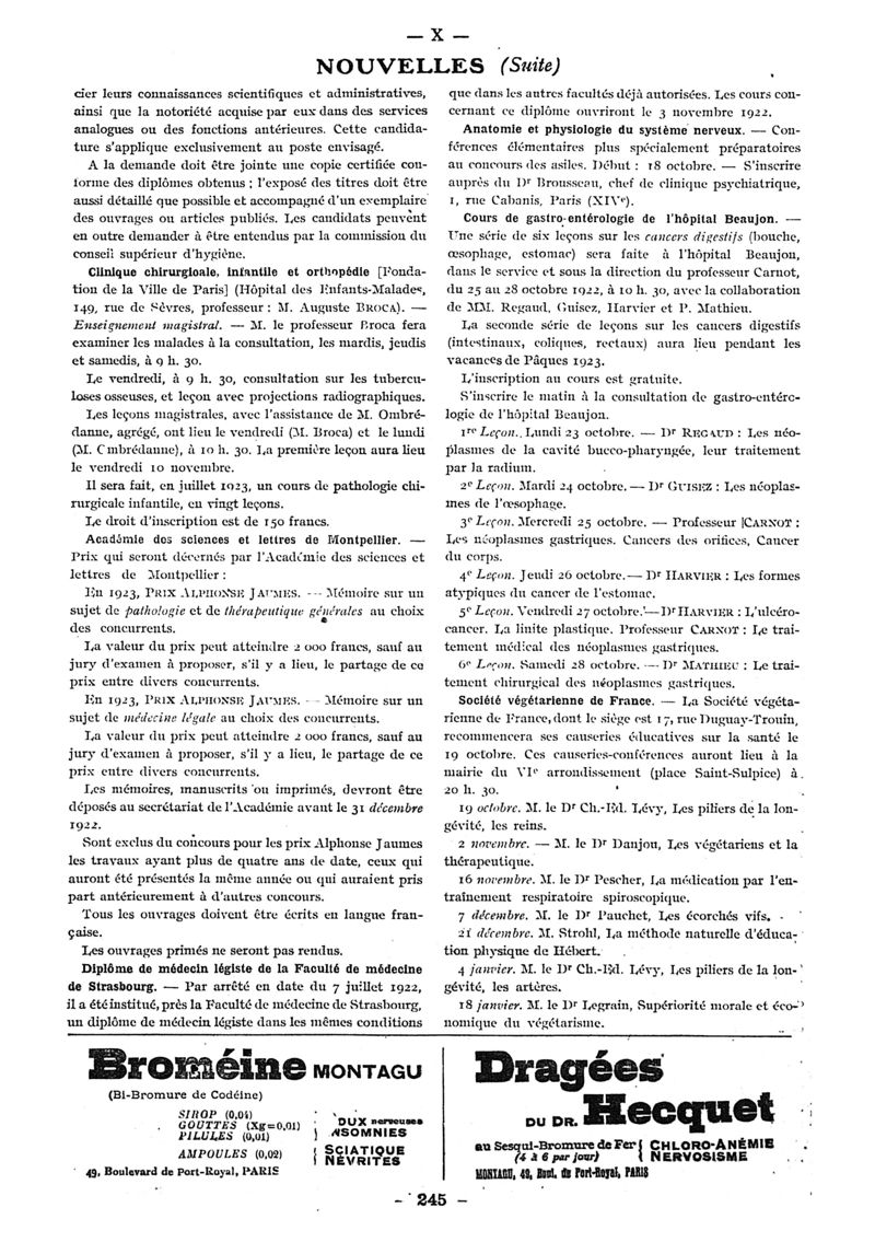 1922, n° 46, partie paramédicale. -
