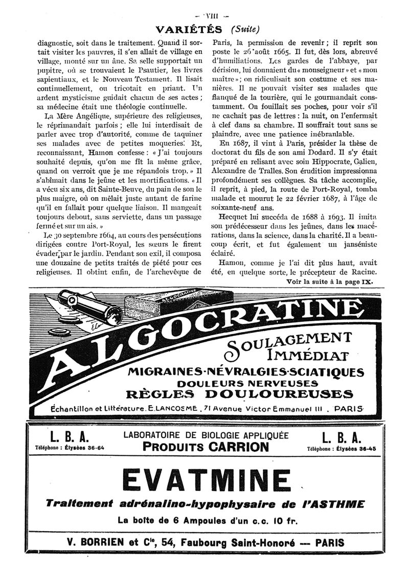 1922, n° 46, partie paramédicale. -