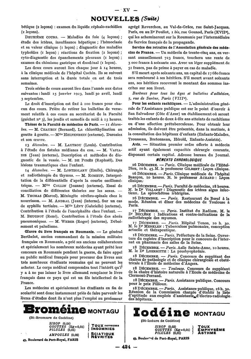 1922, n° 46, partie paramédicale. -
