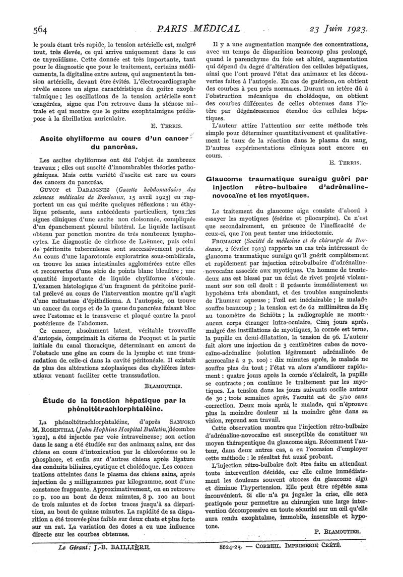 1923, n° 47, partie médicale. -