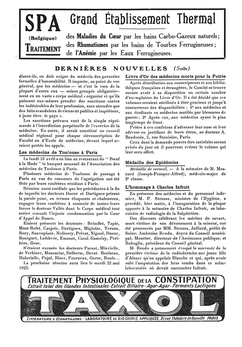 1923, n° 48, partie paramédicale. -