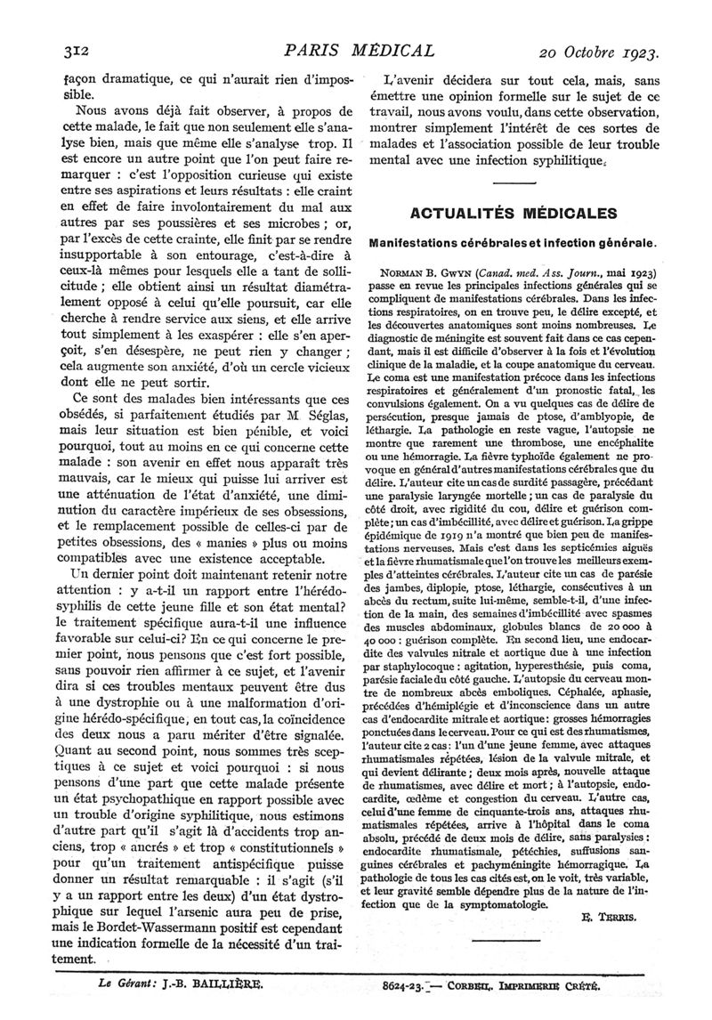 1923, n° 49, partie médicale. -