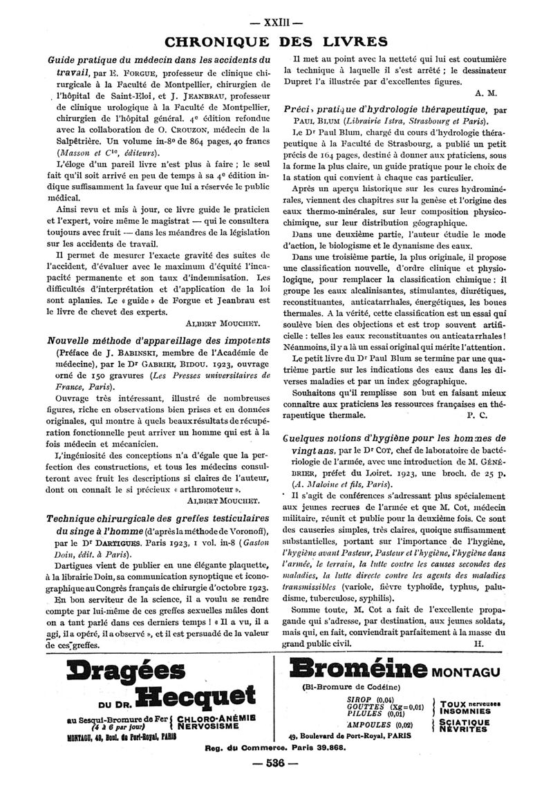 1923, n° 50, partie paramédicale. -