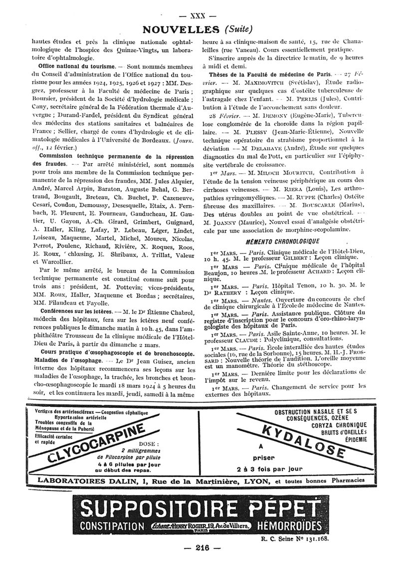 1924, n° 52, partie paramédicale. -