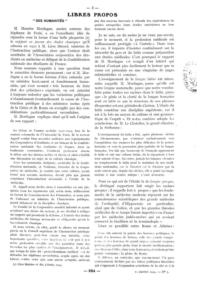 1924, n° 52, partie paramédicale. -