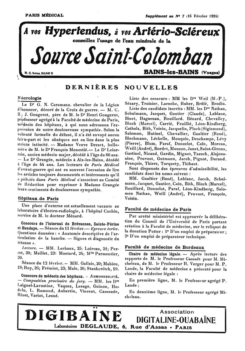 1924, n° 52, partie paramédicale. -