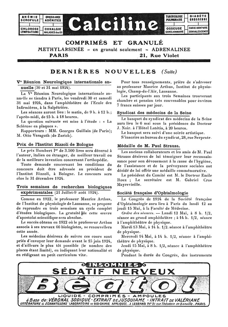 1924, n° 52, partie paramédicale. -
