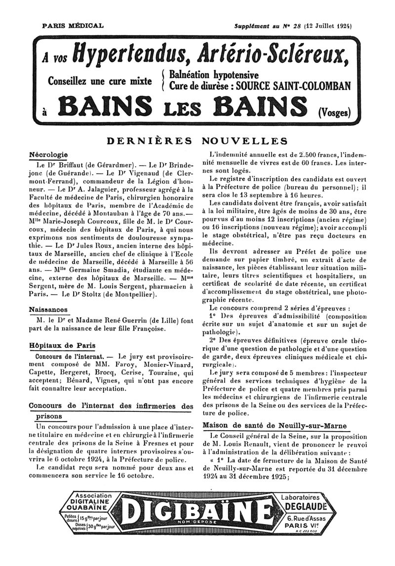 1924, n° 54, partie paramédicale. -
