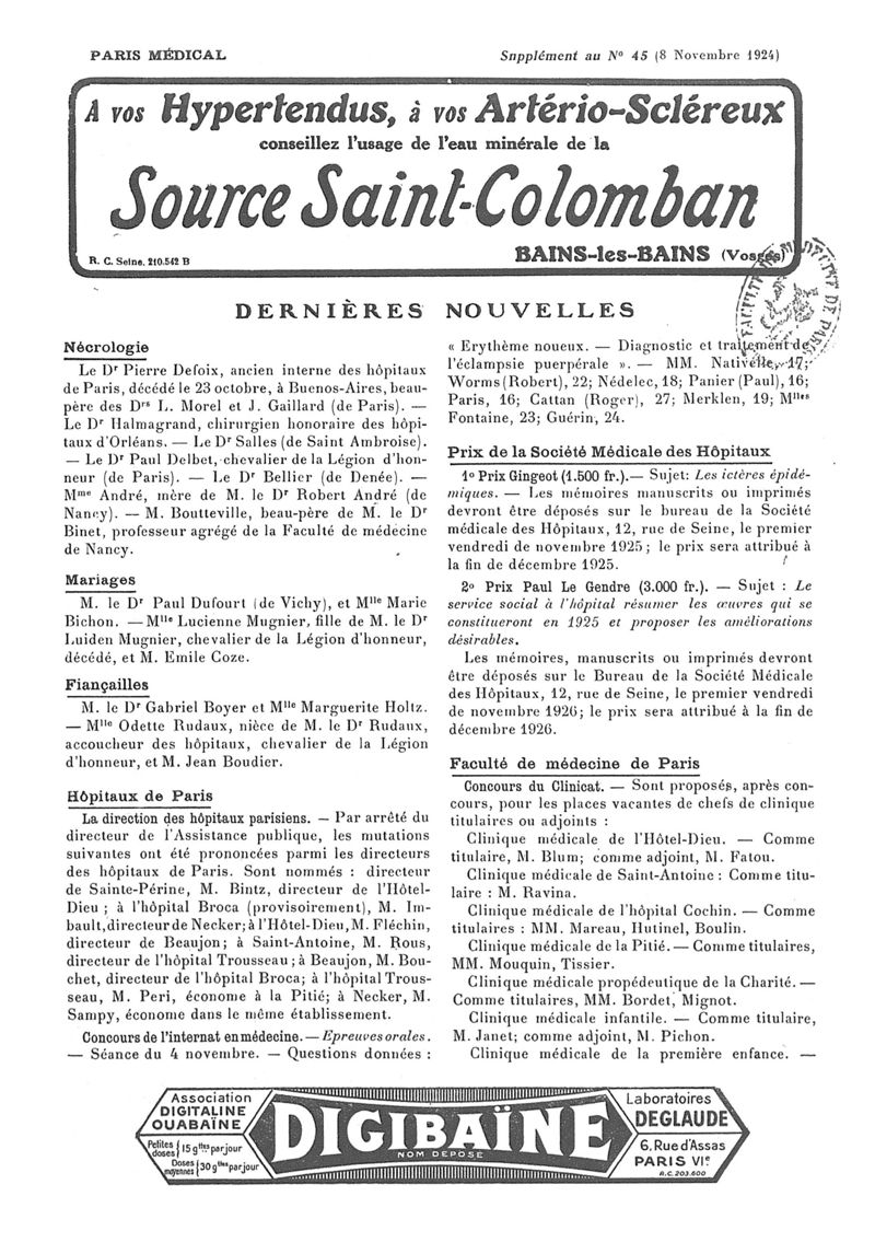 1924, n° 54, partie paramédicale. -