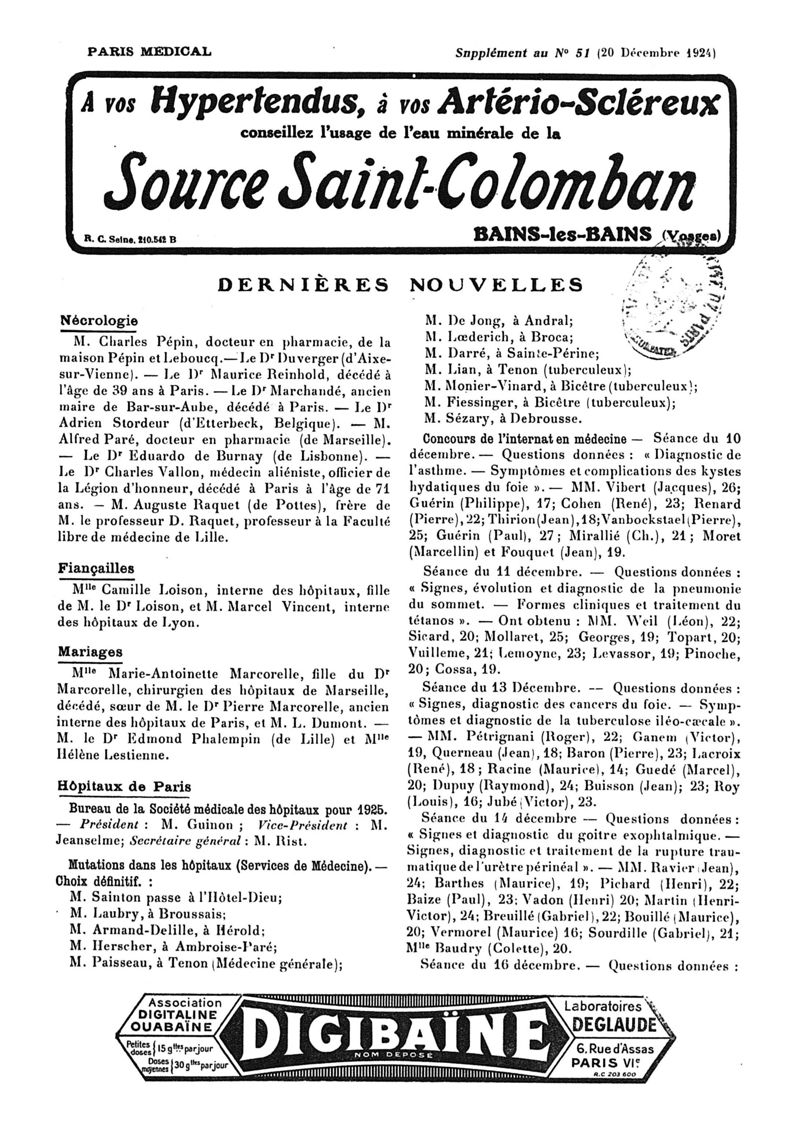 1924, n° 54, partie paramédicale. -