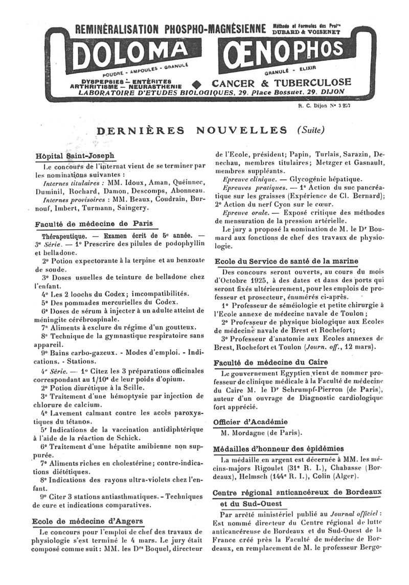 1925, n° 56, partie paramédicale. -
