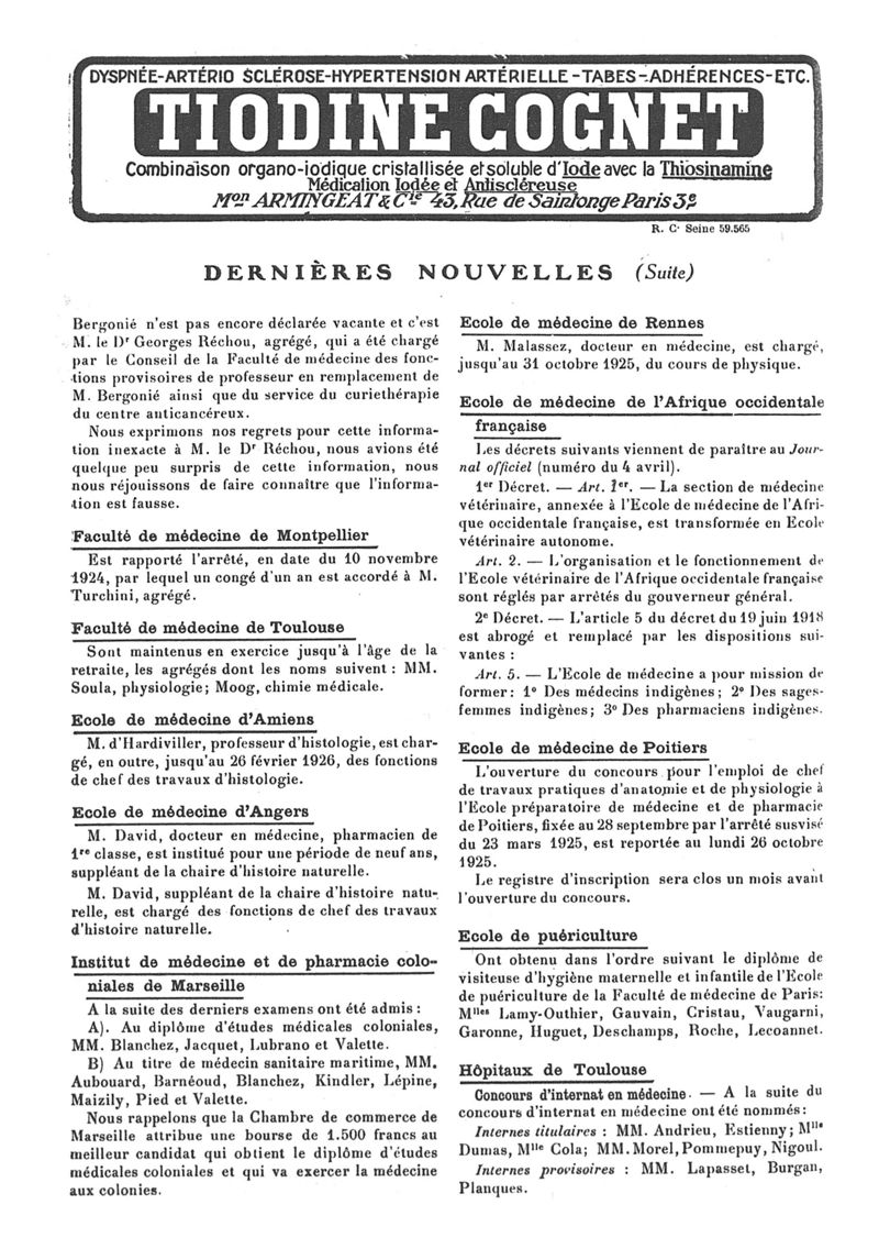 1925, n° 56, partie paramédicale. -