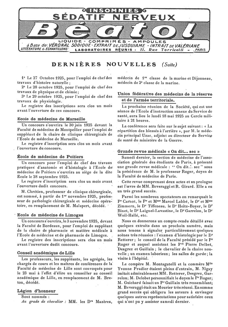 1925, n° 56, partie paramédicale. -