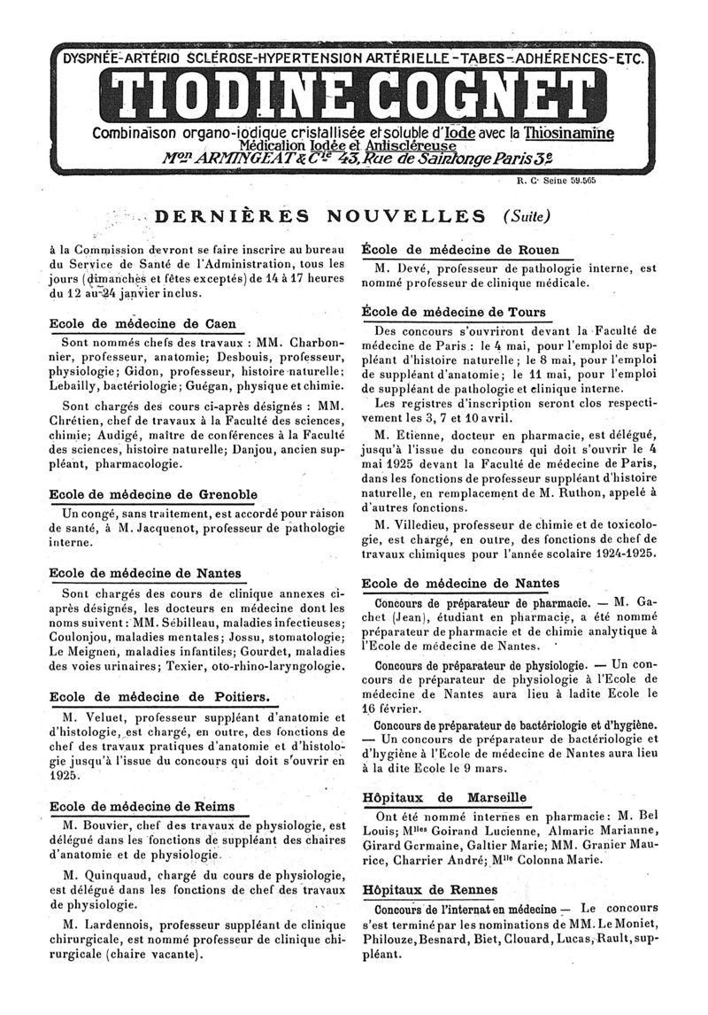 1925, n° 56, partie paramédicale. -