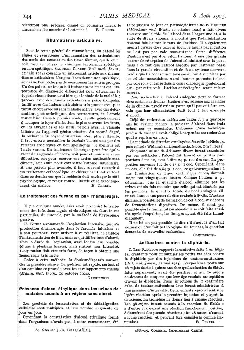 1925, n° 57, partie médicale. -