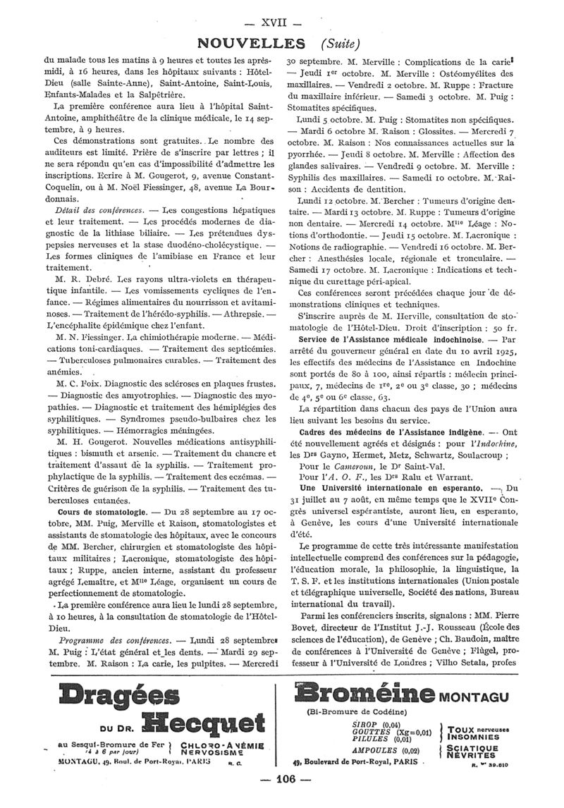 1925, n° 58, partie paramédicale. -