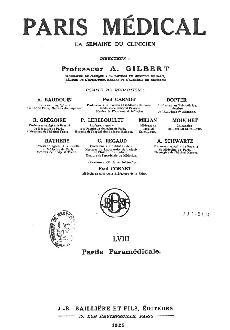 1925, n° 58, partie paramédicale. -