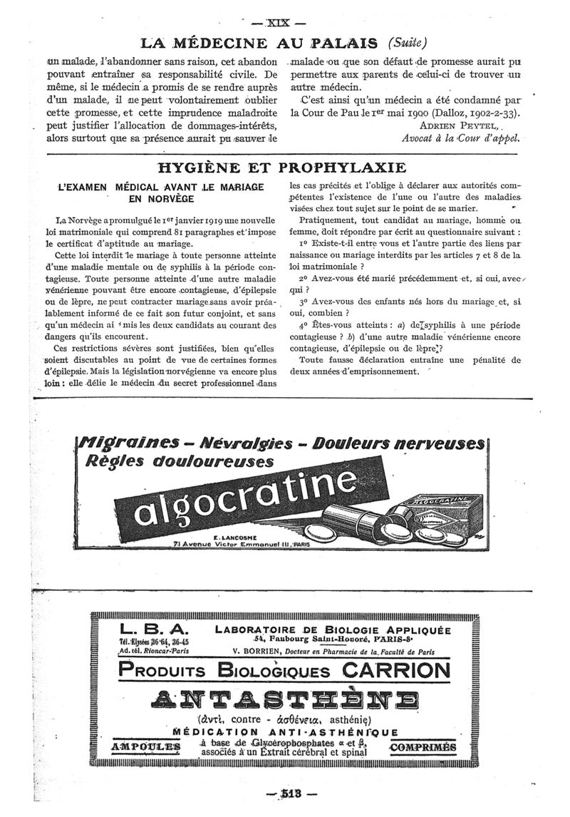 1925, n° 58, partie paramédicale. -