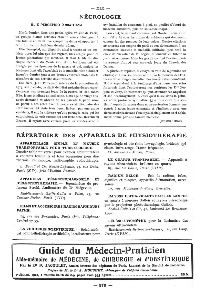 1925, n° 58, partie paramédicale. -