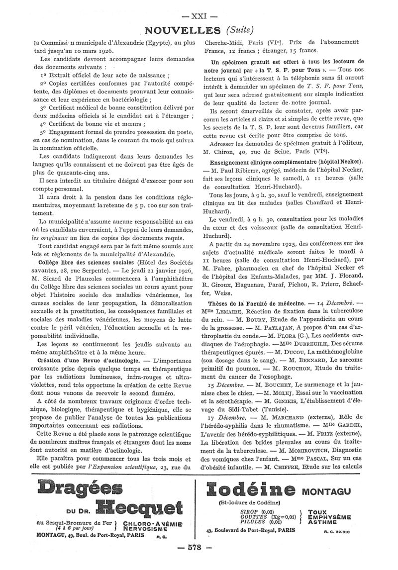 1925, n° 58, partie paramédicale. -