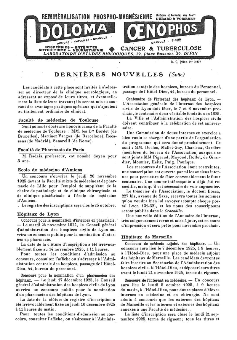 1925, n° 58, partie paramédicale. -