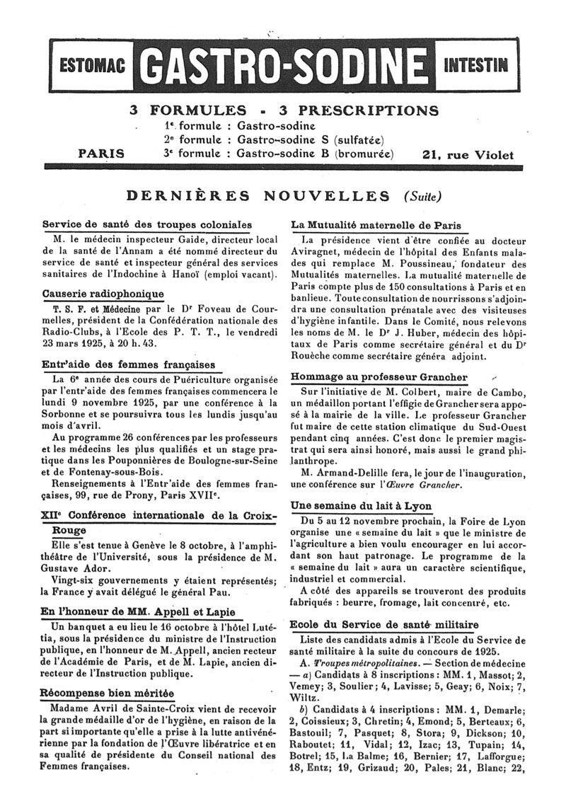 1925, n° 58, partie paramédicale. -