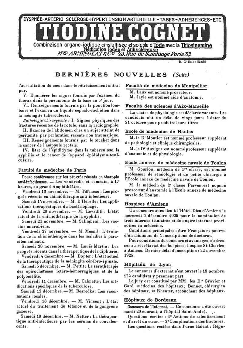 1925, n° 58, partie paramédicale. -