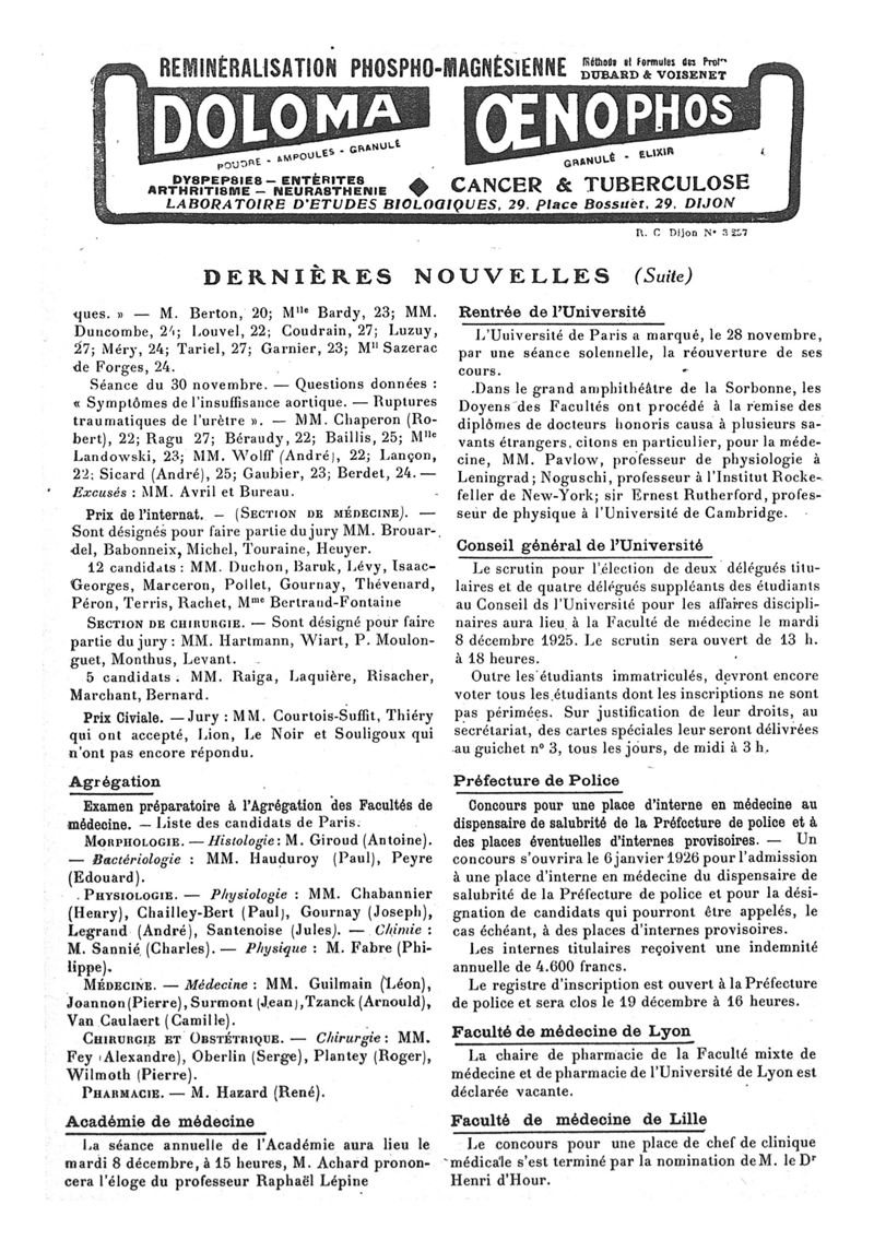 1925, n° 58, partie paramédicale. -