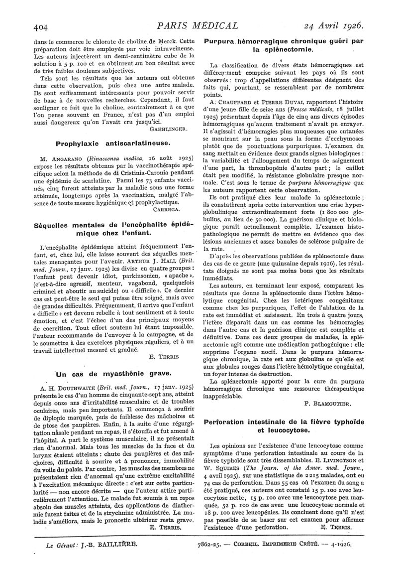 1926, n° 59, partie médicale. -