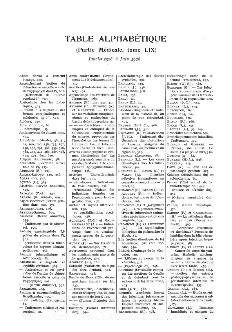 1926, n° 59, partie médicale. -