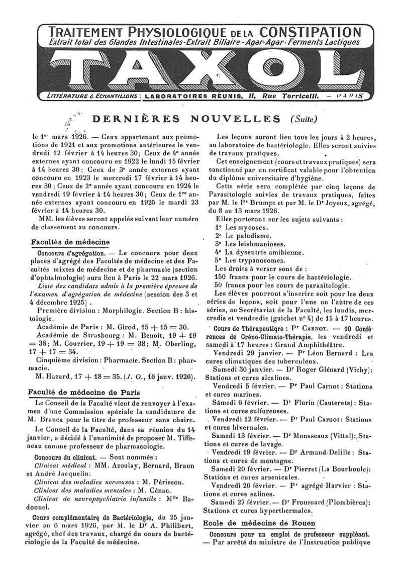 1926, n° 60, partie paramédicale. -