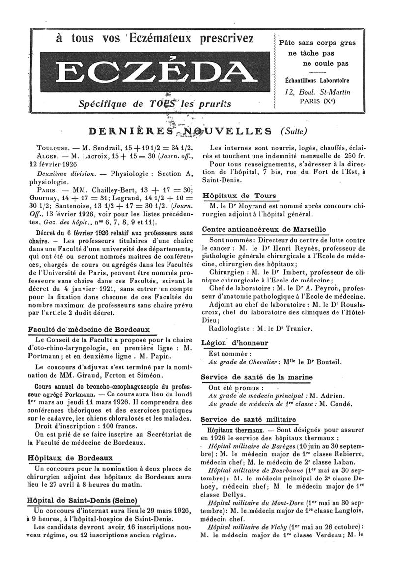 1926, n° 60, partie paramédicale. -