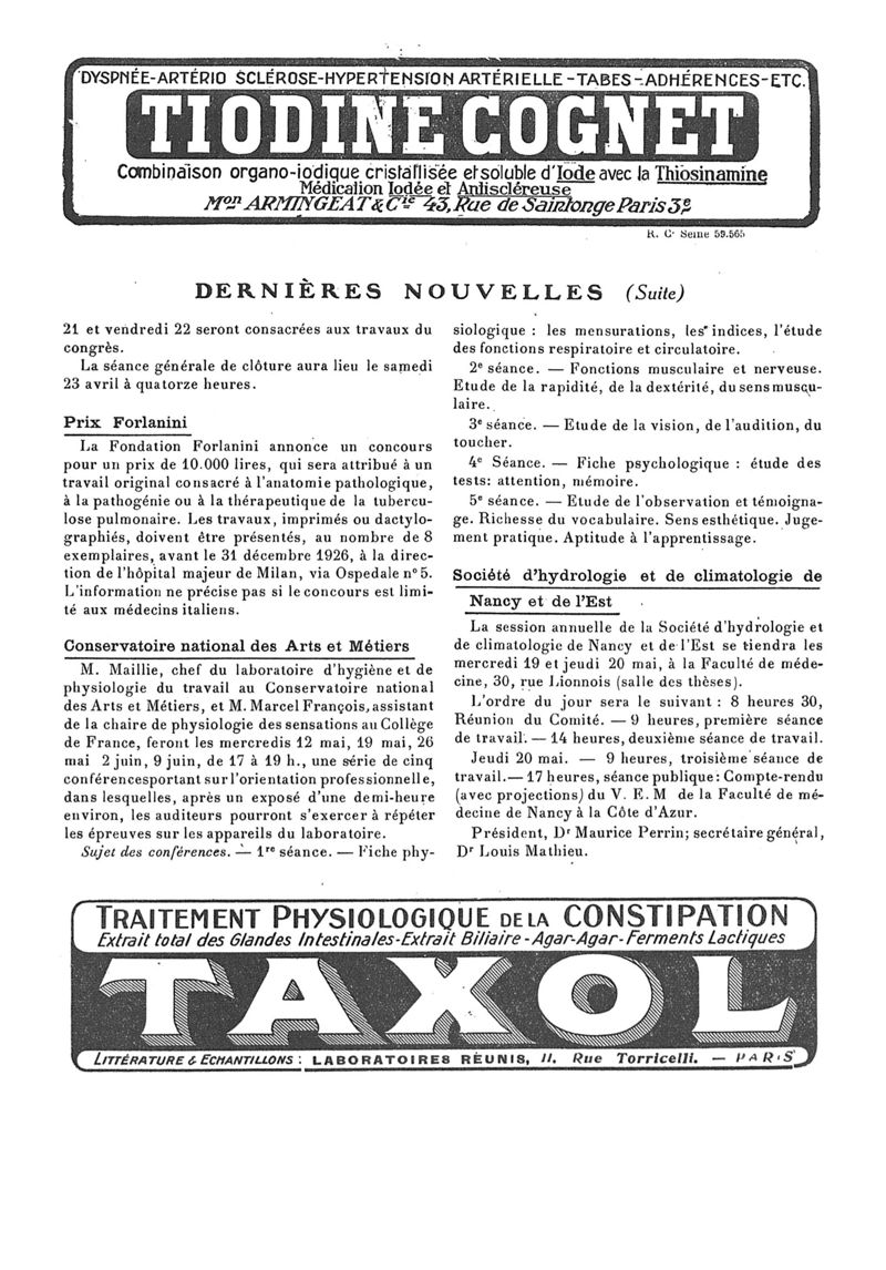 1926, n° 60, partie paramédicale. -