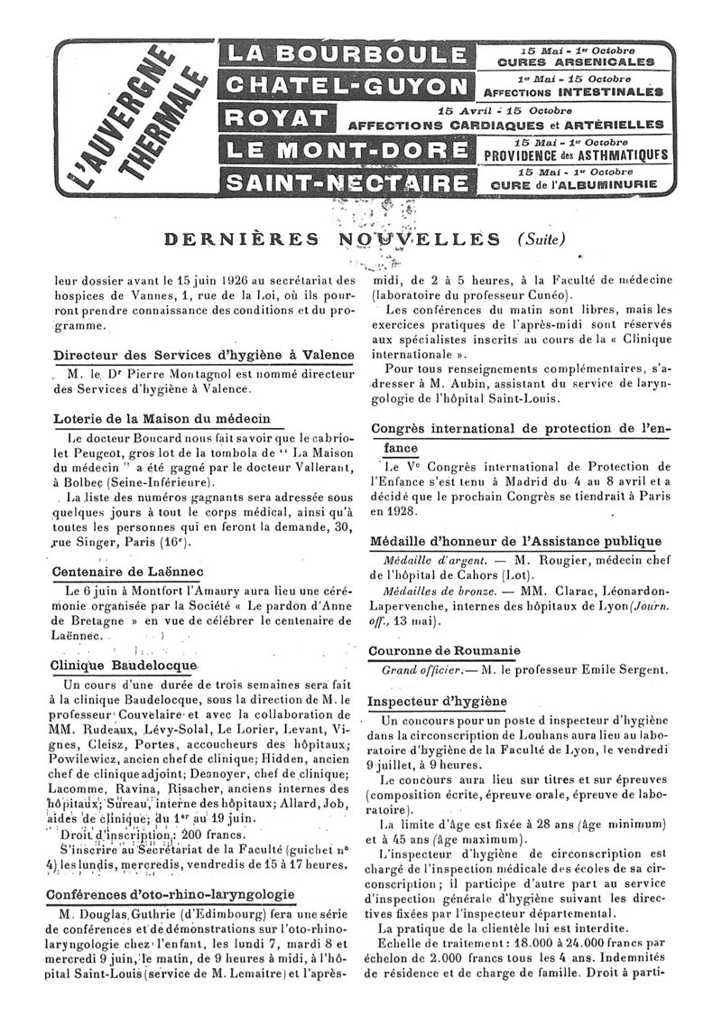 1926, n° 60, partie paramédicale. -