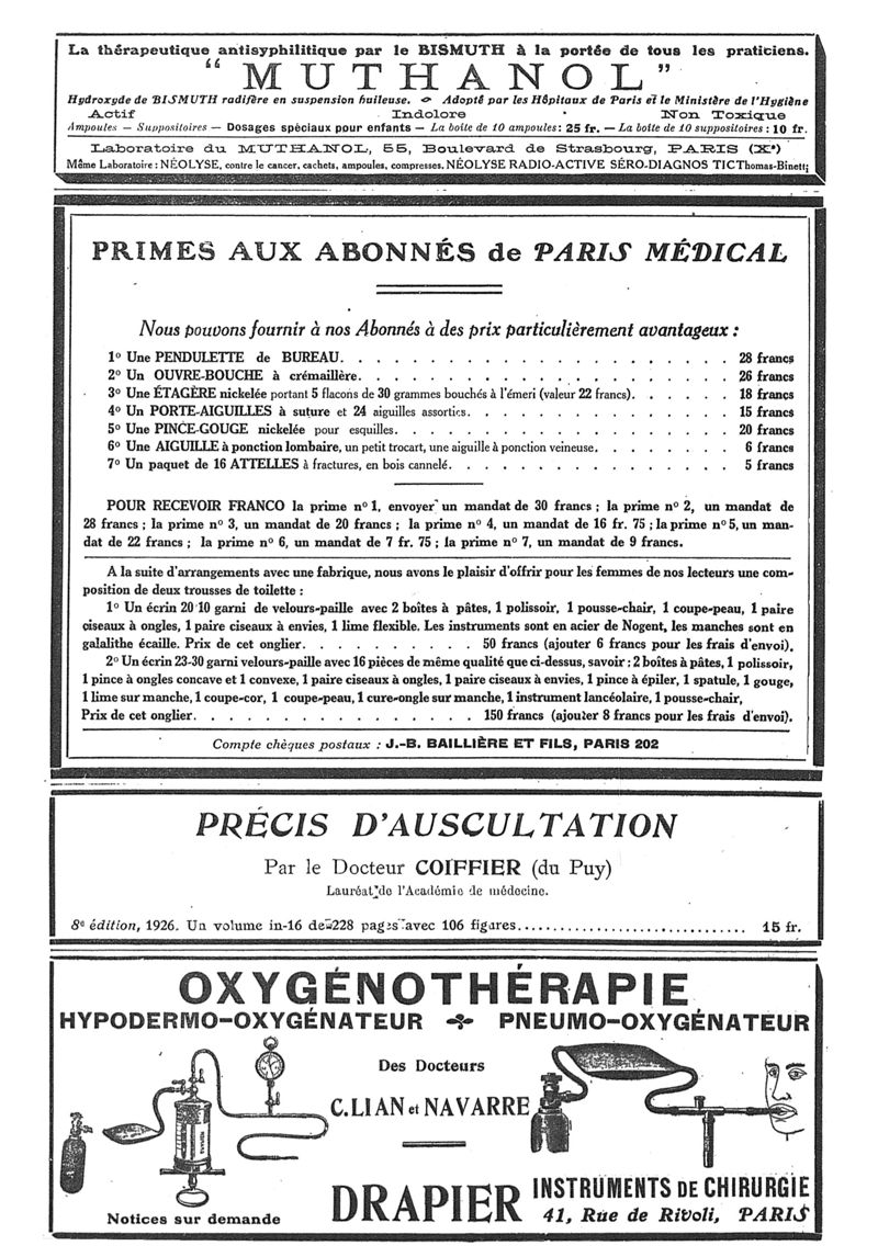 1926, n° 60, partie paramédicale. -