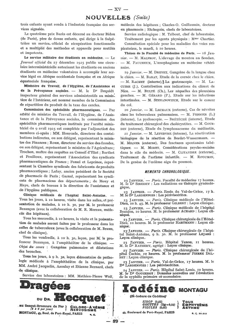 1926, n° 60, partie paramédicale. -