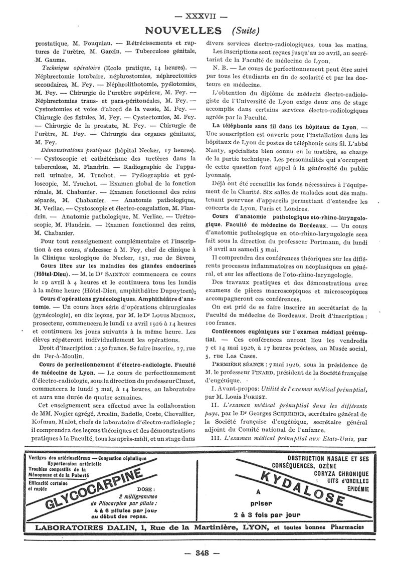 1926, n° 60, partie paramédicale. -