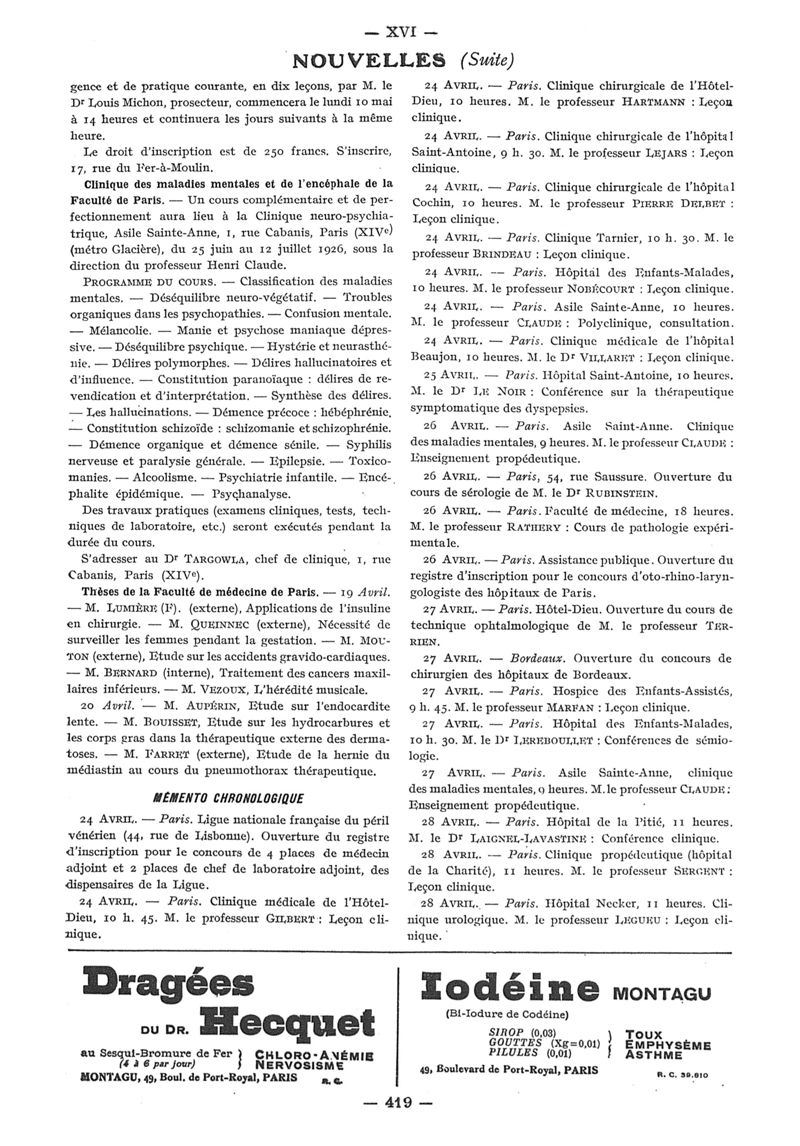 1926, n° 60, partie paramédicale. -