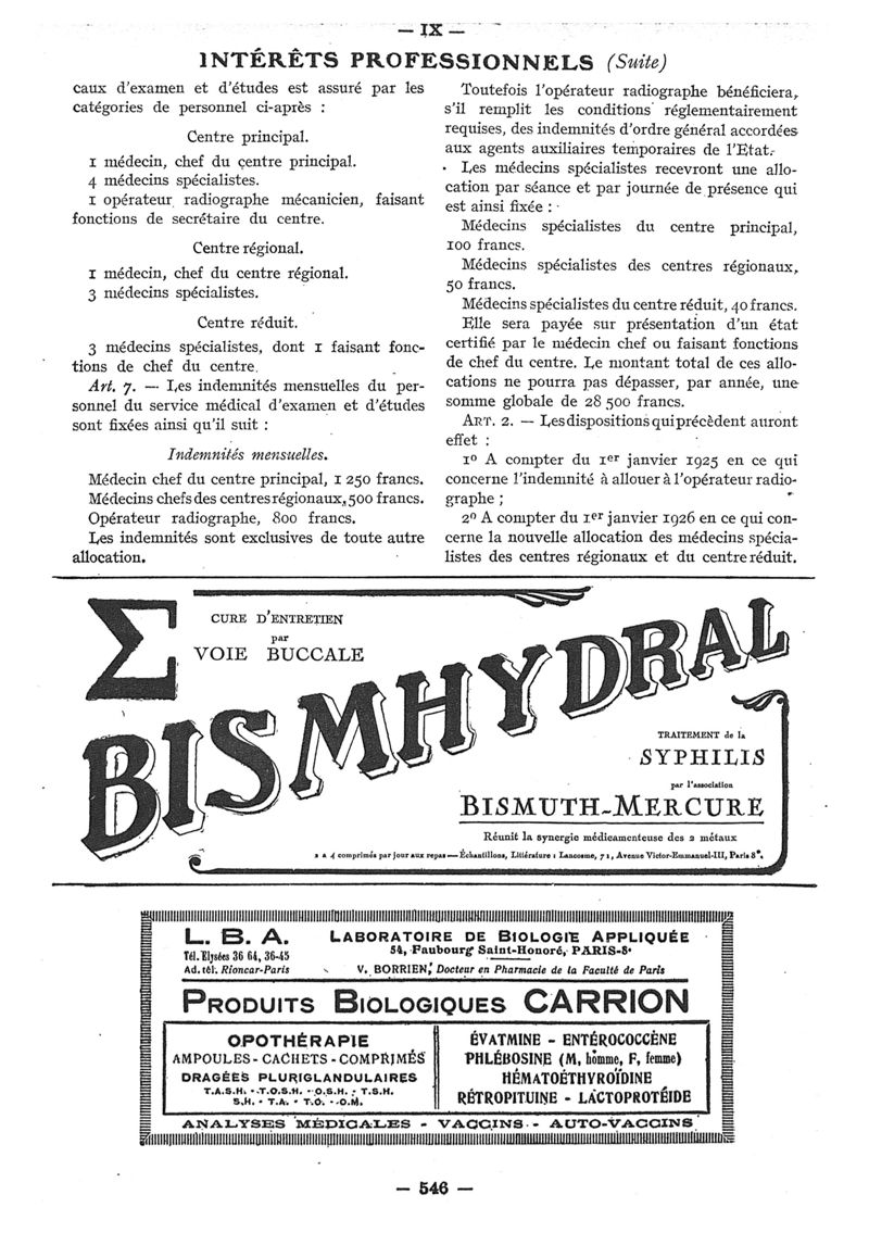 1926, n° 60, partie paramédicale. -