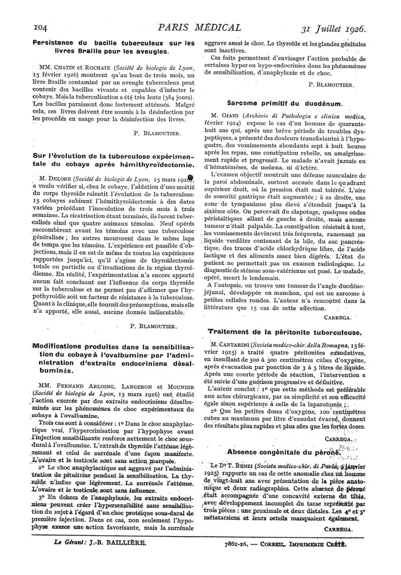1926, n° 61, partie médicale. -